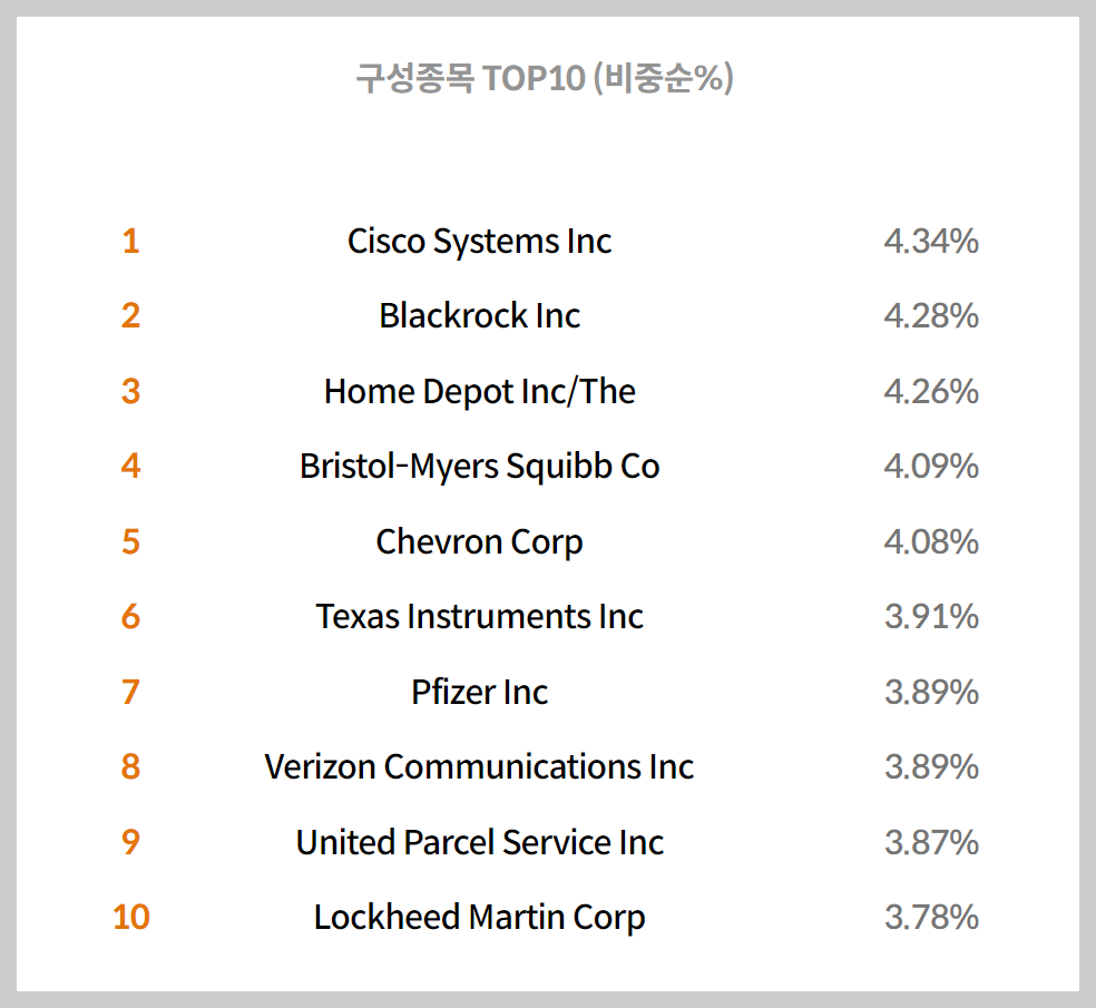 사실 구성종목은 다른 미국배당 ETF들과 비슷합니다.