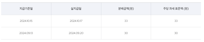 최근 배당금 지급내역
