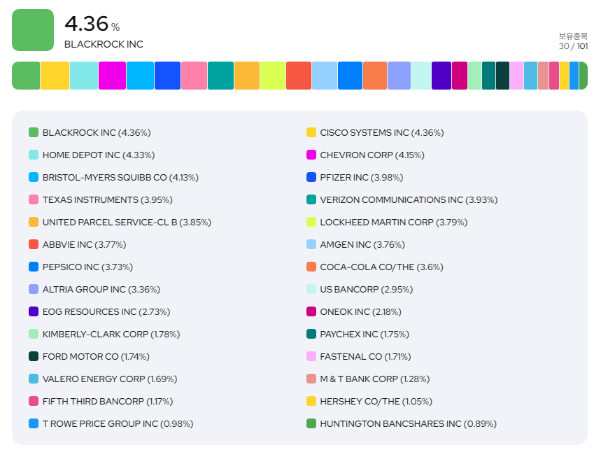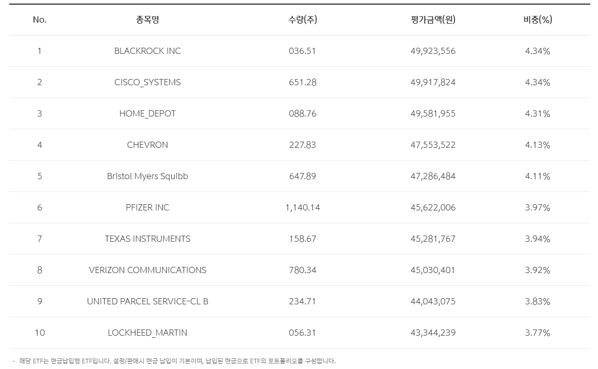 사실 구성종목은 다른 미국배당 ETF들과 비슷합니다.