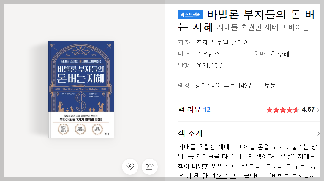 돈 공부 책 추천 3, 세 번째로 소개해드릴 책은 '바빌론 부자들의 돈 버는 지혜'라는 책입니다.