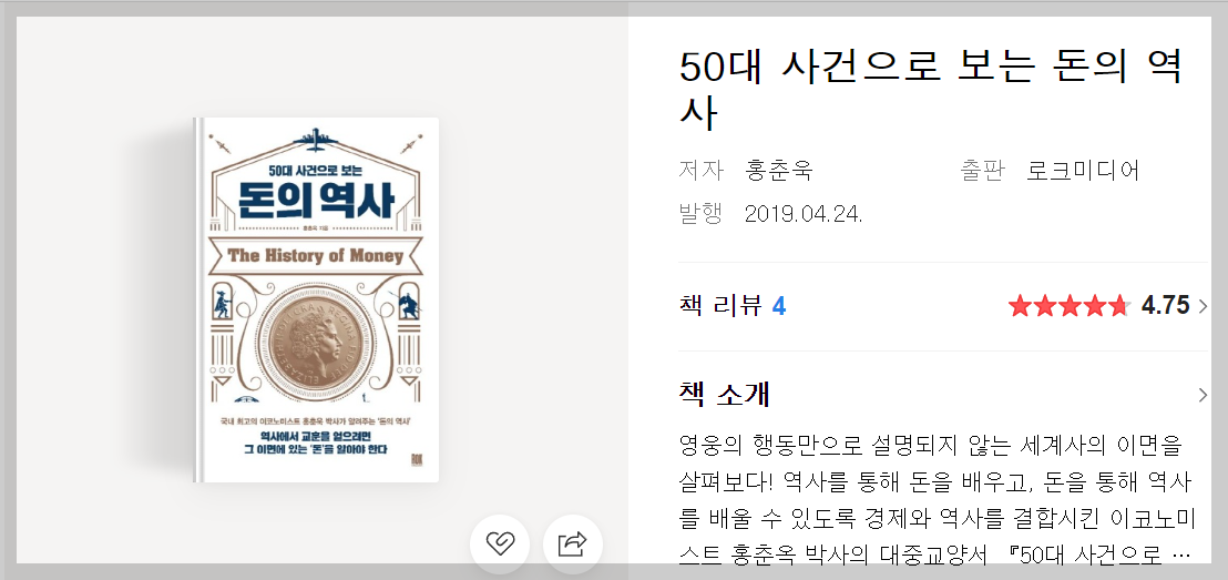세계사의 50대 사건으로 돈의 역사를 알려주고 기초 지식이 부족하거나 따로 공부하기 힘든 사람들에게 추천하는 책입니다.