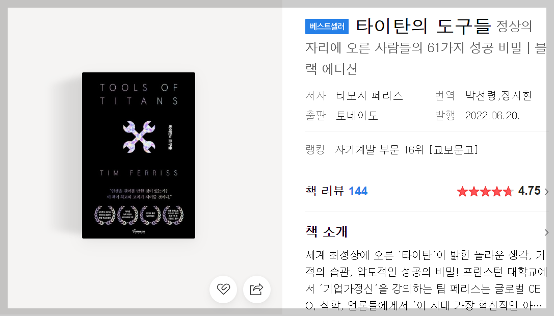 돈 공부 책 추천 2, 두 번째로 소개해드릴 책은 '타이탄의 도구들'이라는 책입니다.
