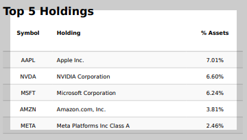 미국 전체 주식 시장을 추종하는 ETF로, 대형주부터 소형주까지 폭넓은 노출을 제공합니다. 그렇다 보니 분산 투자에 적합합니다. 사실 분산 투자 그 자체라고 볼 수 있습니다. 그렇지만 아무래도 대형주들이 비중이 높은데 가장 많이 차지하는 주식들로는 Appe(AAPL), Microsoft(MSFT), Amazon(AMZN), 엔비디아 등이 있습니다.