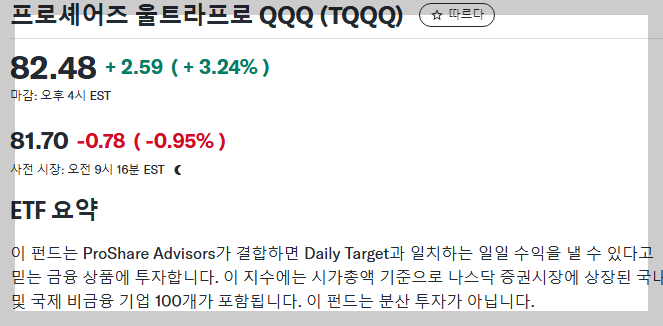 미국에서 가장 인기 있는 ETF : 10. ProShares UltraPro QQQ (TQQQ)