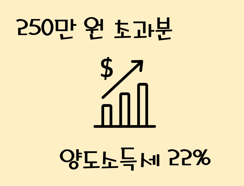 과세 기준 : 연간 해외주식 양도차익이 250만 원을 초과할 경우 초과분에 대해 22% 세율(지방세 포함)이 부과됩니다.