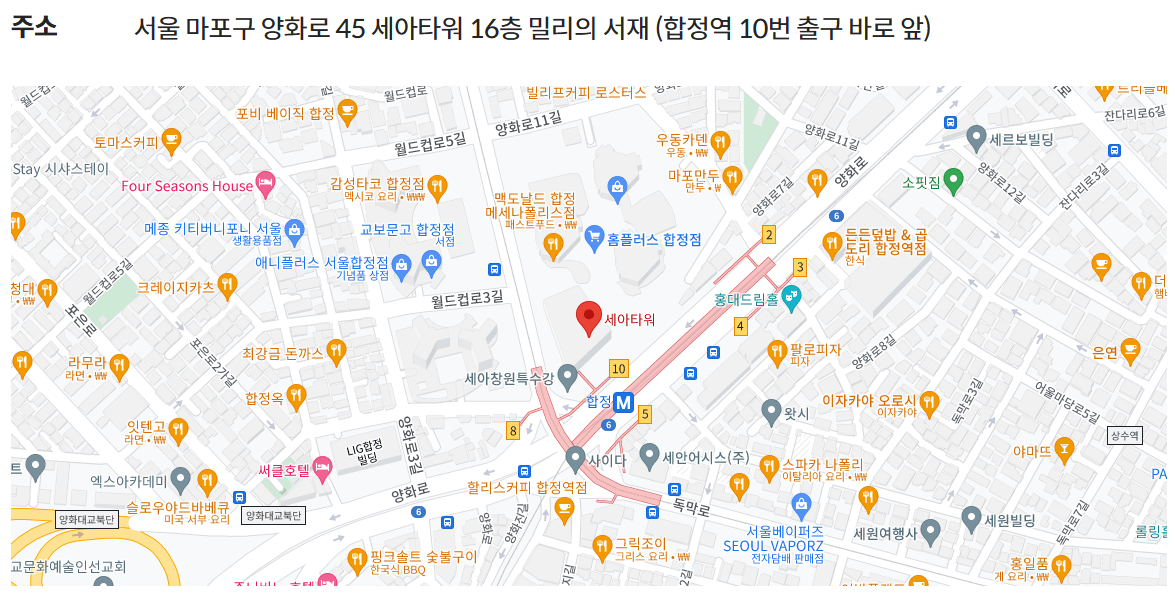밀리의 서재는 소재지는 서울특별시 마포구 양화로 45, 16층에 위치했습니다.