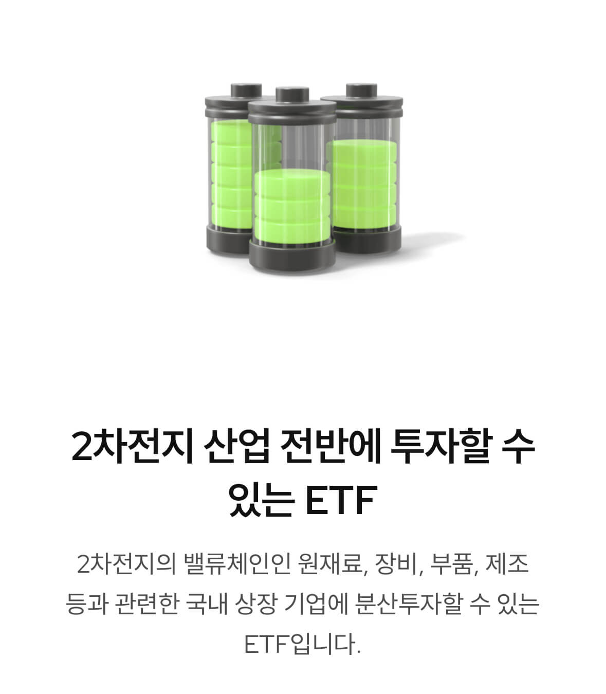국내 2차 전지 관련 기업에 집중 투자하며, 전기차 및 배터리 산업 성장에 베팅하는 ETF입니다.