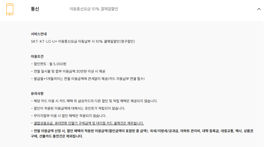 SKT, KT, LG U+ 자동납부 시 10% 할인으로 월 한도는 5,000원입니다.