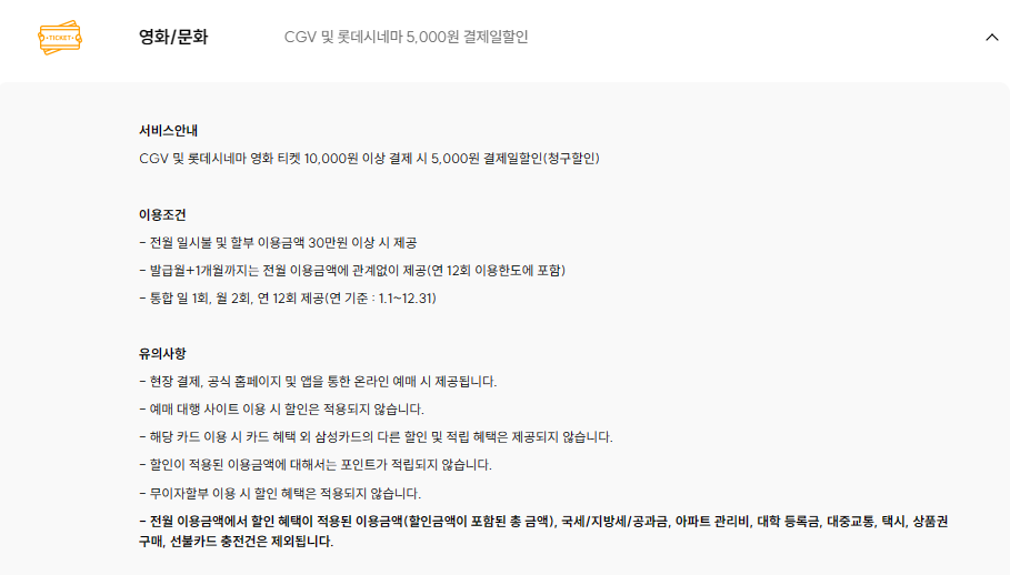 CGV나 롯데시네마 영화 티켓 만원 이상 결제 시 5,000원 할인입니다.