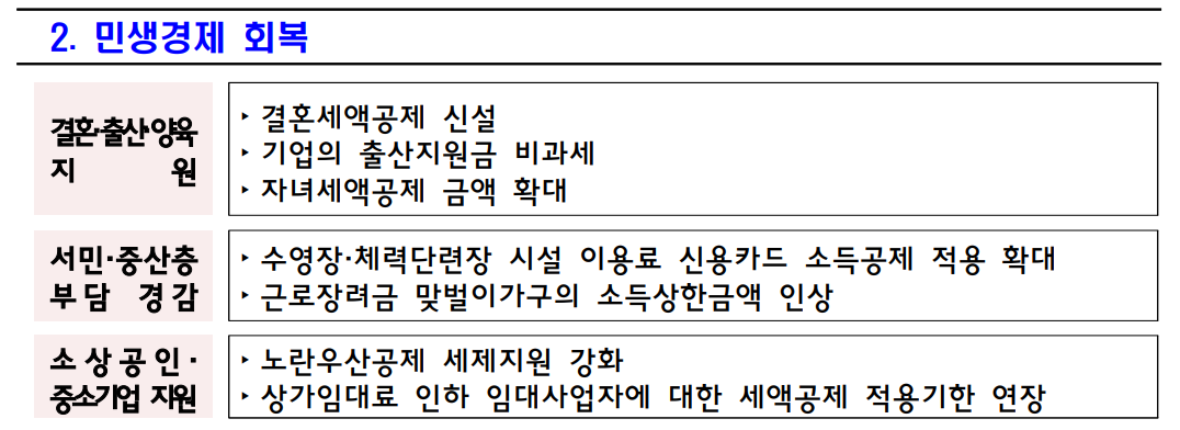 신혼부부에게 인당 50만 원, 즉 100 만원의 세액 공제가 제공됩니다.