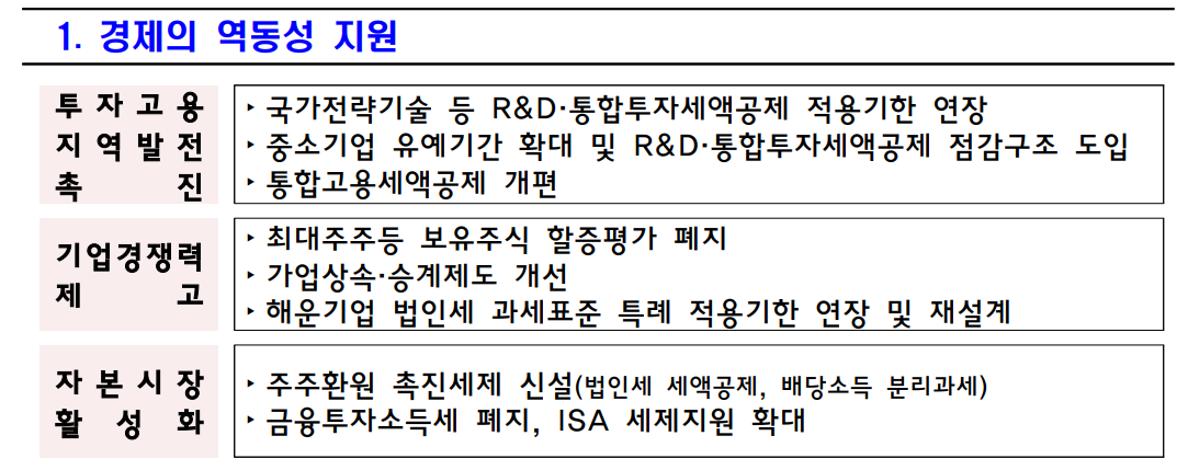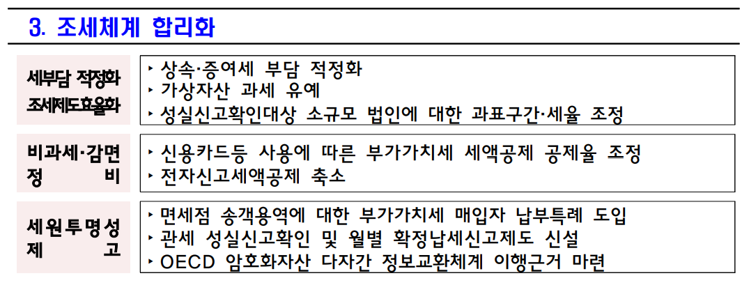 세금 개편으로 인한 세금에 대한 부담이 감소합니다.