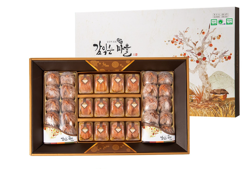 위의 곶감은 고급스럽고 대접받는 느낌으로 잘 포장해서 줍니다.