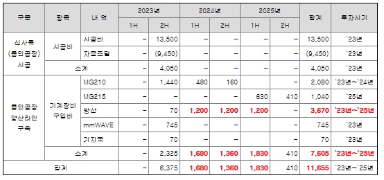 1) 시설투자계획