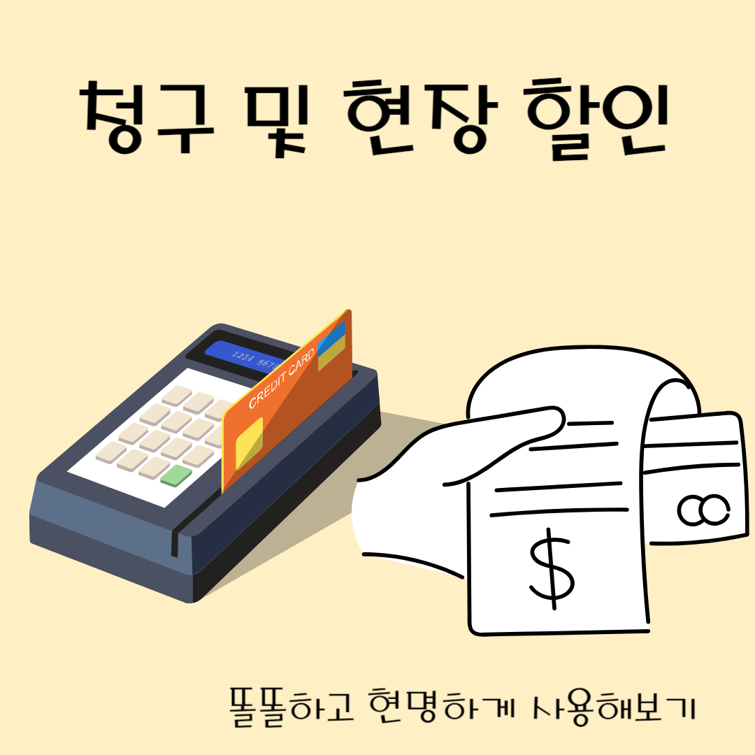 신용카드 꿀팁 다섯 번째는 카드의 할인의 종류를 청구할인과 현장할인으로 나눠보겠습니다.