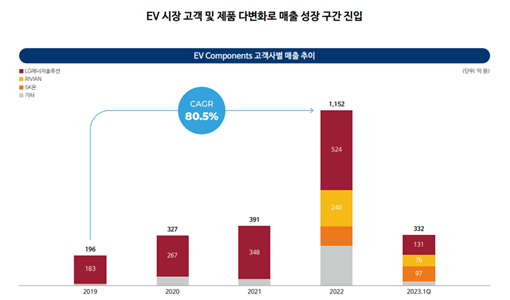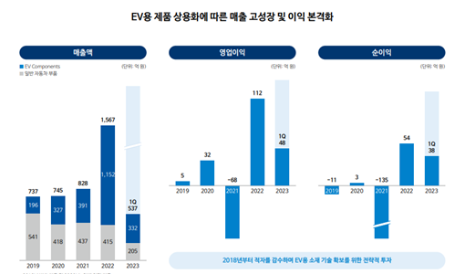 또한, 2022년에는 미국 전기차 업체인 Rivian의 협력업체로 등록하였고, 2023년에는 미국의 고급 전기차 업체인 LUCID와 협력업체 등록에 성공합니다.