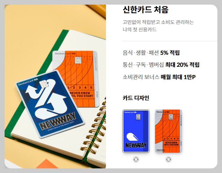 알짜배기 신용카드 추천 : 1. 신한카드 처음