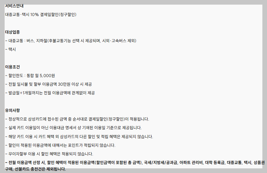 대중교통도 마찬가지로 10% 할인이고 한도는 5,000원입니다.