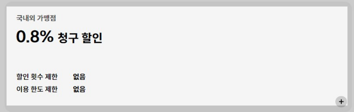 실적, 한도 제한 없이 국내외 가맹점 이용 금액의 0.8% 청구할인