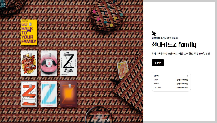 현대카드 추천 TOP 1이었던 현대카드M BOOST랑 달리 현대카드Z family는 청구 할인이라는 점이 장점입니다.