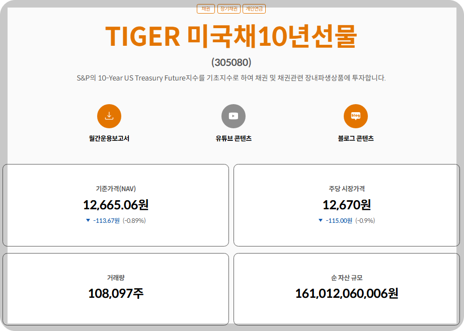 연금 ETF 추천: 7. TIGER 미국채10년선물 (채권형)