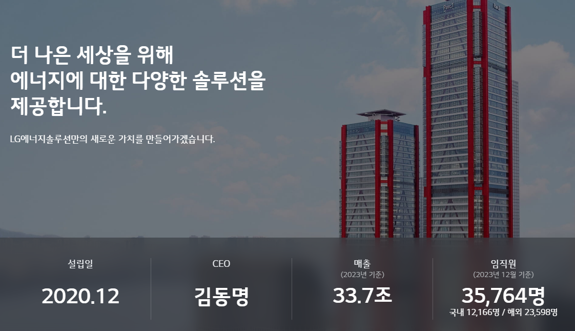 전기차 말고도 이차 전지, 태양광 패널, ESS 등의 생산도 하고 있습니다.