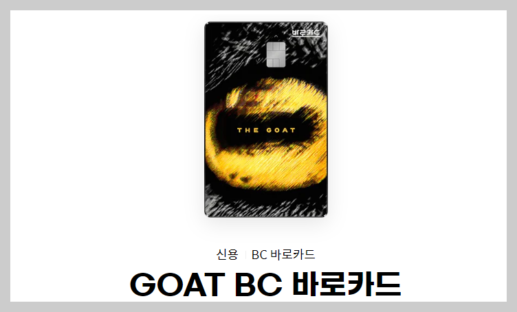 전월실적 없는 신용카드 추천 첫 번째는 GOAT BC 바로카드입니다.