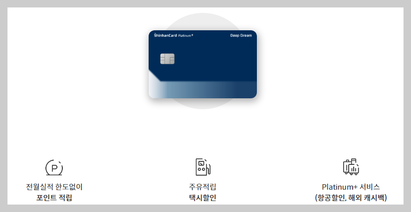 전월실적 없는 신용카드 추천 다섯 번째는 신한 Deep dream 카드입니다.