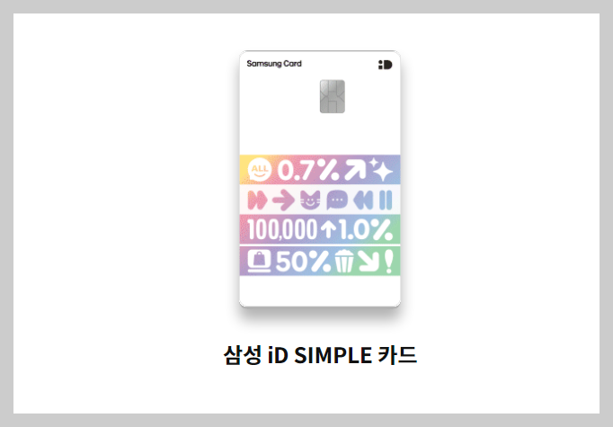 전월실적 없는 신용카드 추천 여섯 번째 삼성 iD SIMPLE카드입니다.