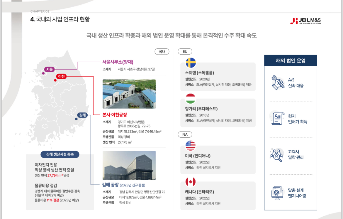 제일엠앤에스 국내외 사업 인프라 현황입니다.
