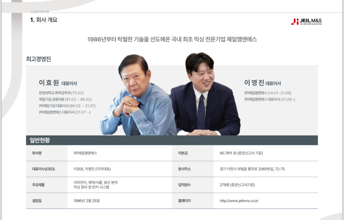 제일엠앤애스 어떤 회사인가?