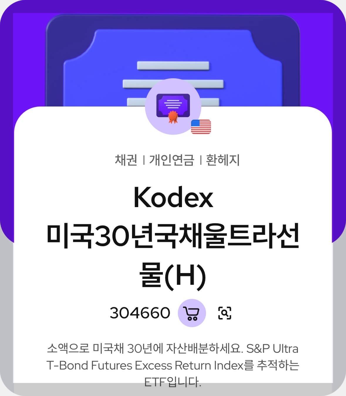 특징: 환헤지 전략을 활용하여 환율 변동 리스크를 최소화한 미국 장기 국채 투자 상품.