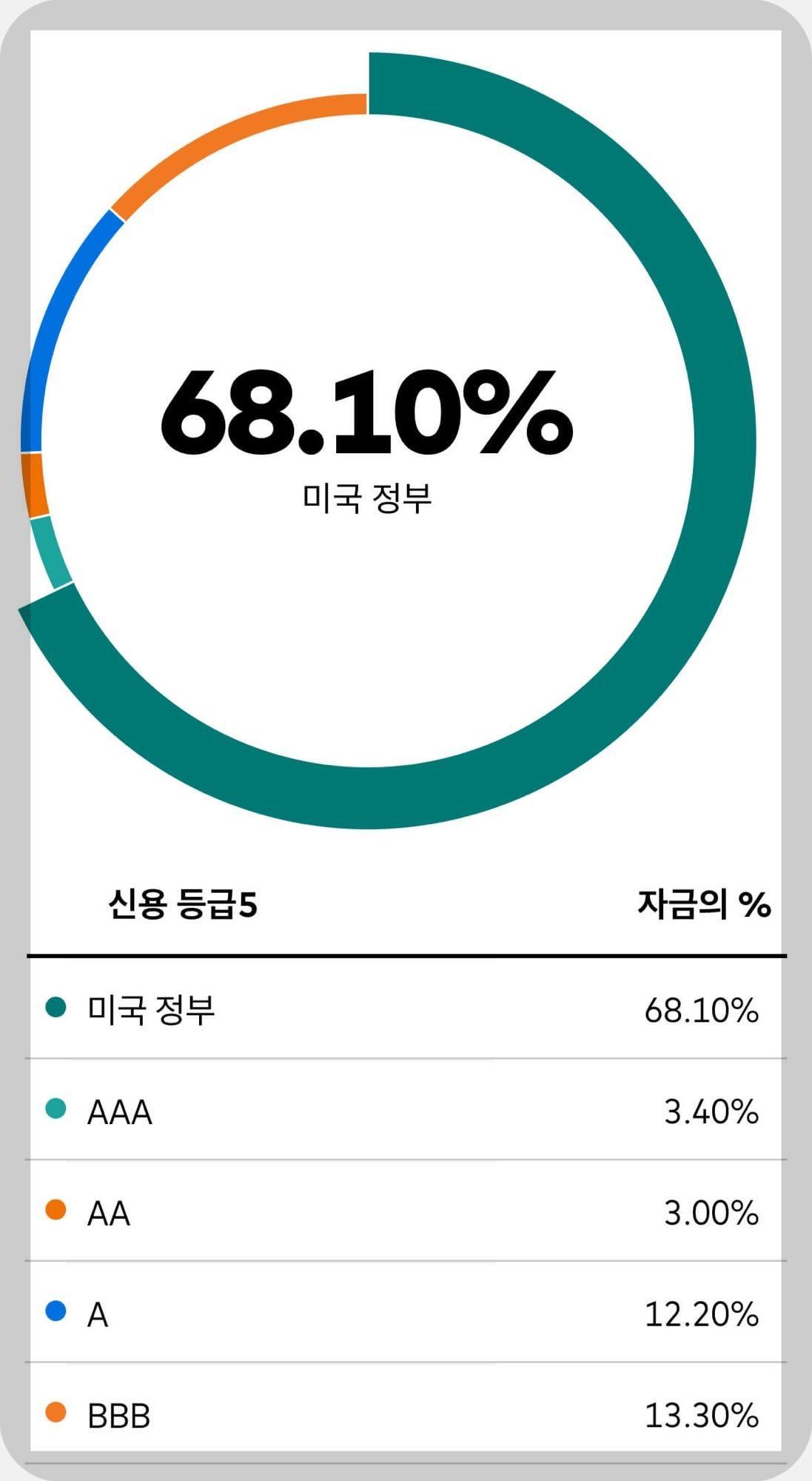 특징: 미국 전역의 다양한 채권(정부, 회사채 등)에 투자하며 분산 효과 극대화됩니다.