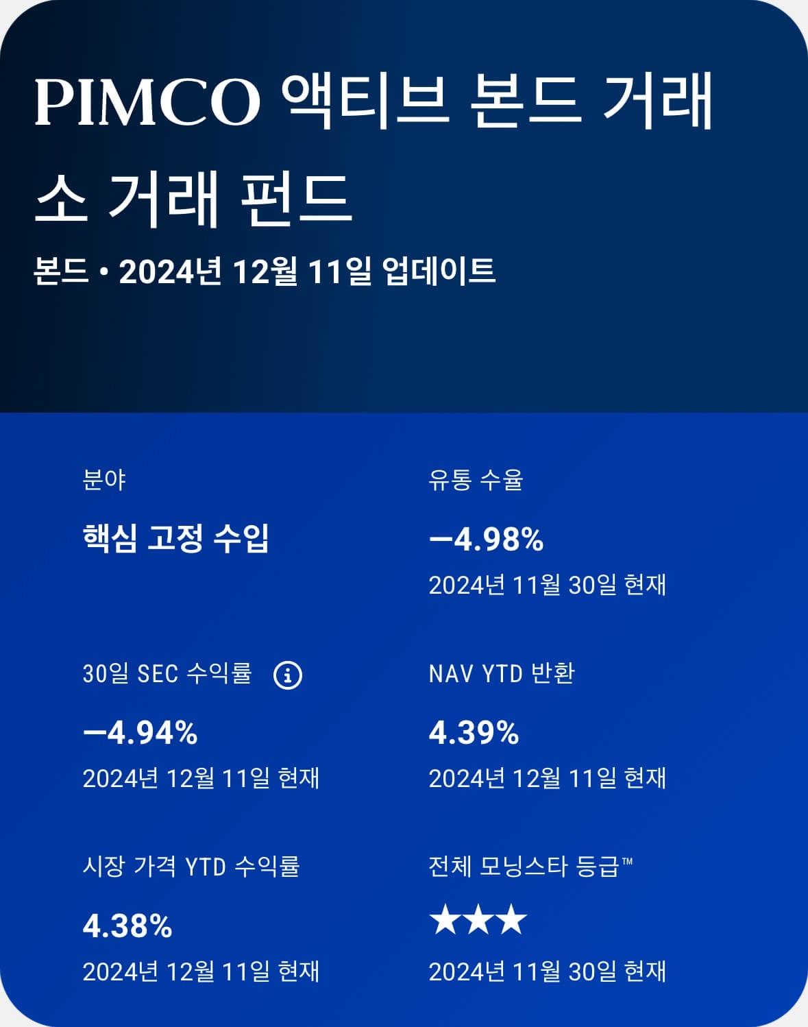 추천 이유: 채권형 ETF 중에서도 액티브 전략을 선호하는 투자자에게 적합합니다.