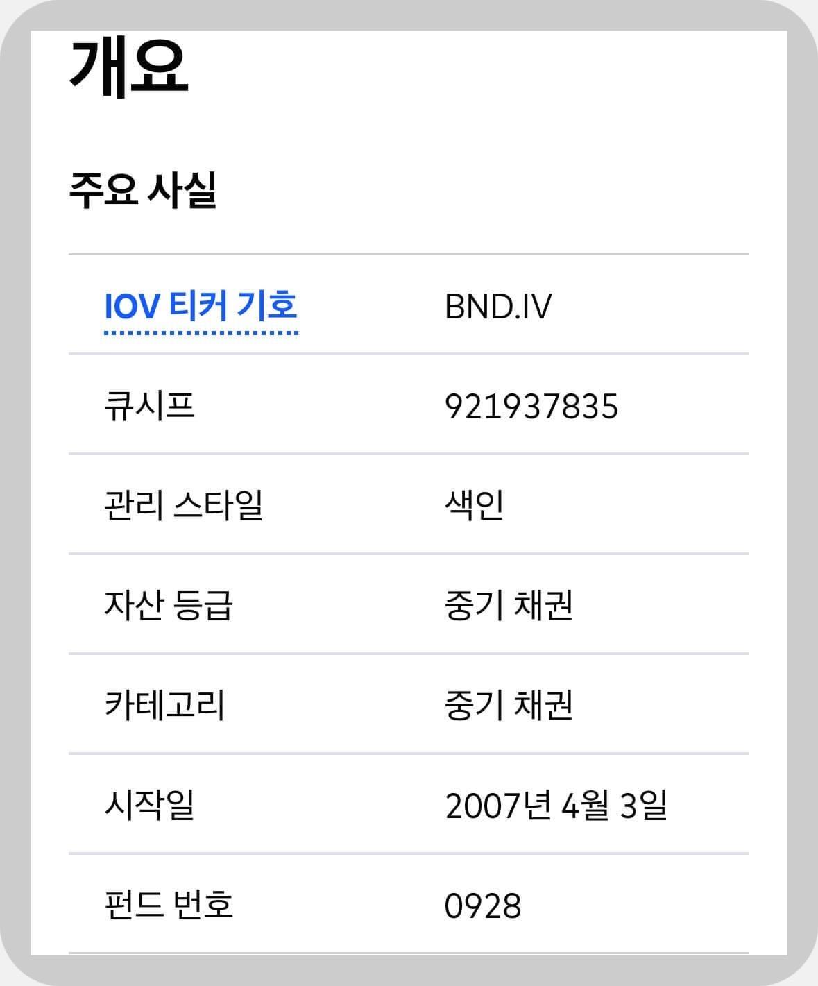 특징: 미국 전체 채권 시장을 추종하며 안정성과 수익률의 균형을 맞춘 상품입니다.