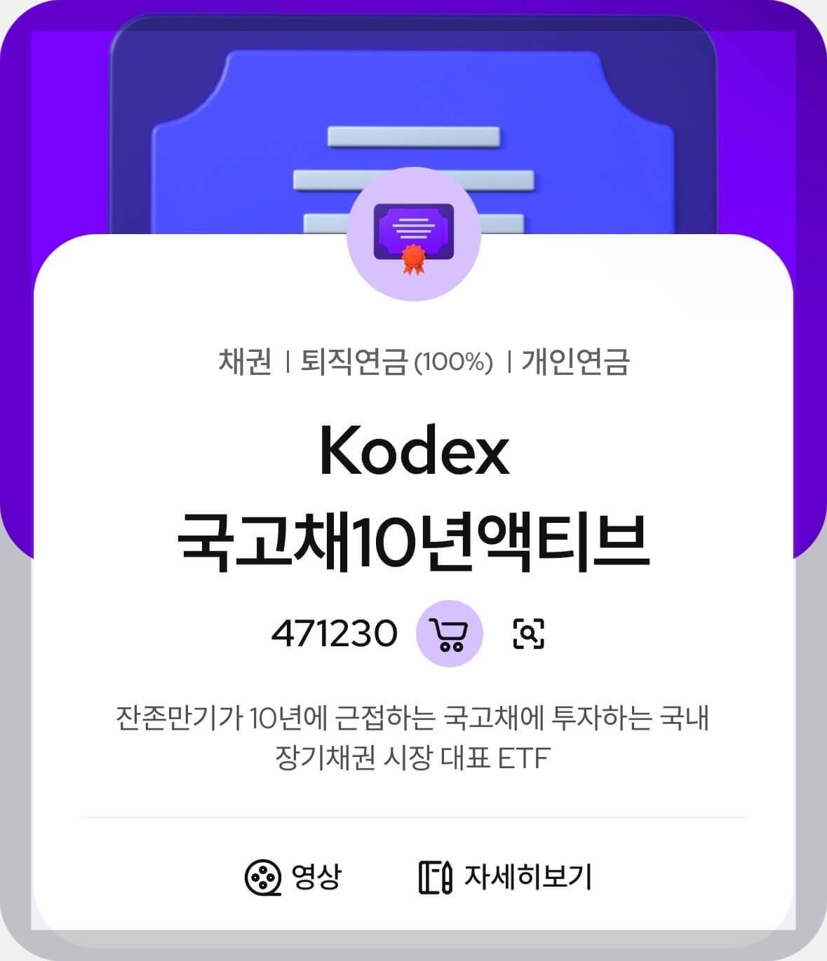 특징: 국내 10년 만기 국고채에 투자하며 안정적인 수익을 추구합니다. 금리가 하락할 때 가격 상승효과를 기대할 수 있습니다.