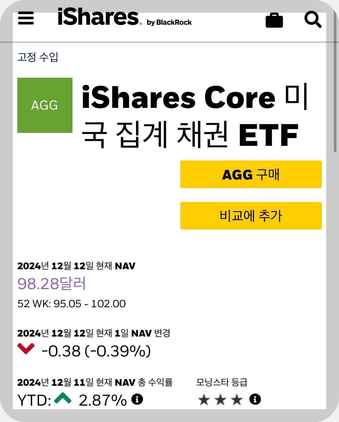 채권 ETF 추천 여섯 번째는 AGG ETF입니다.