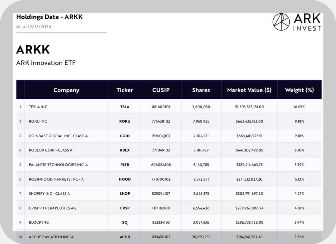 ARKK 보유종목 상위10개