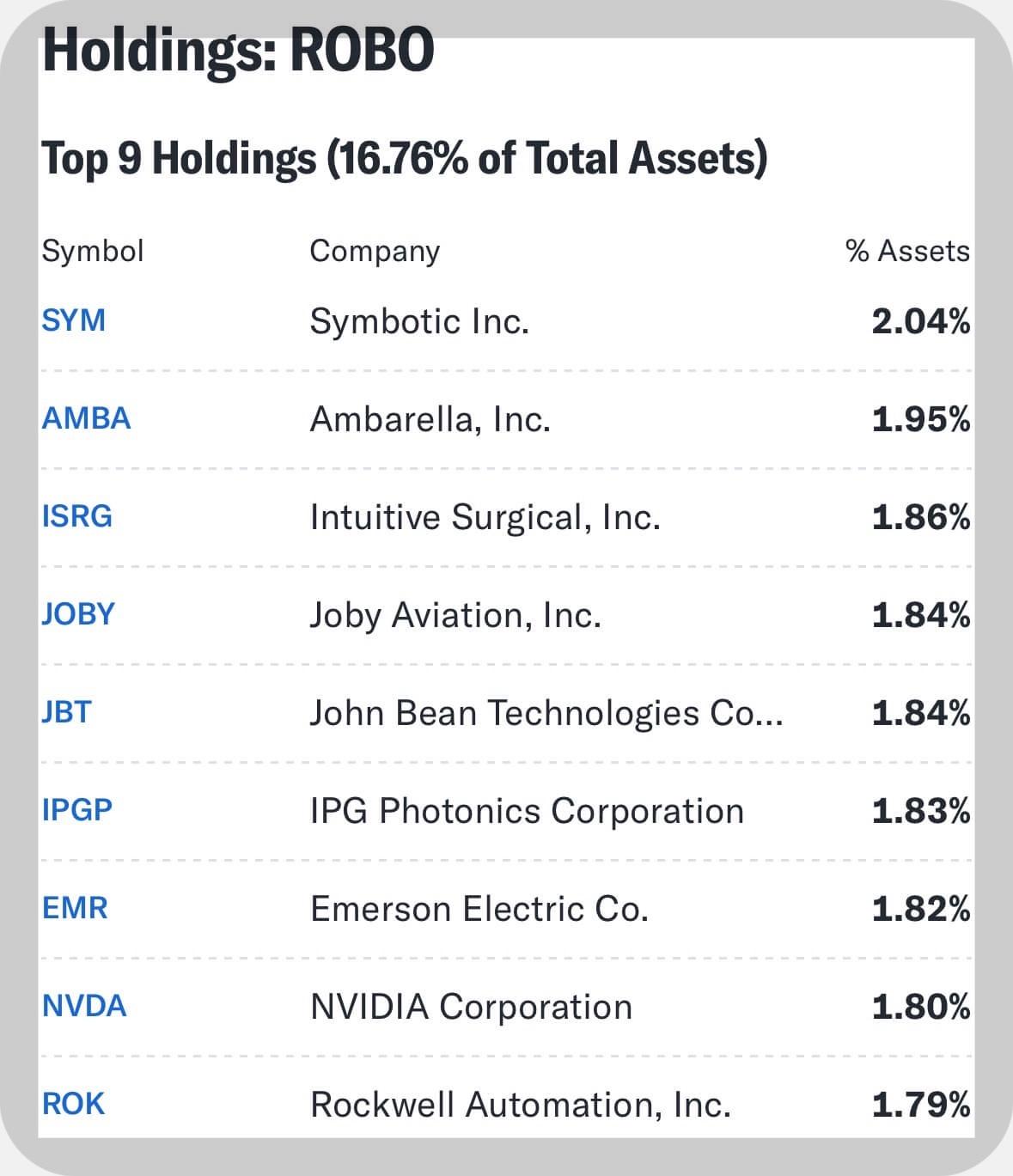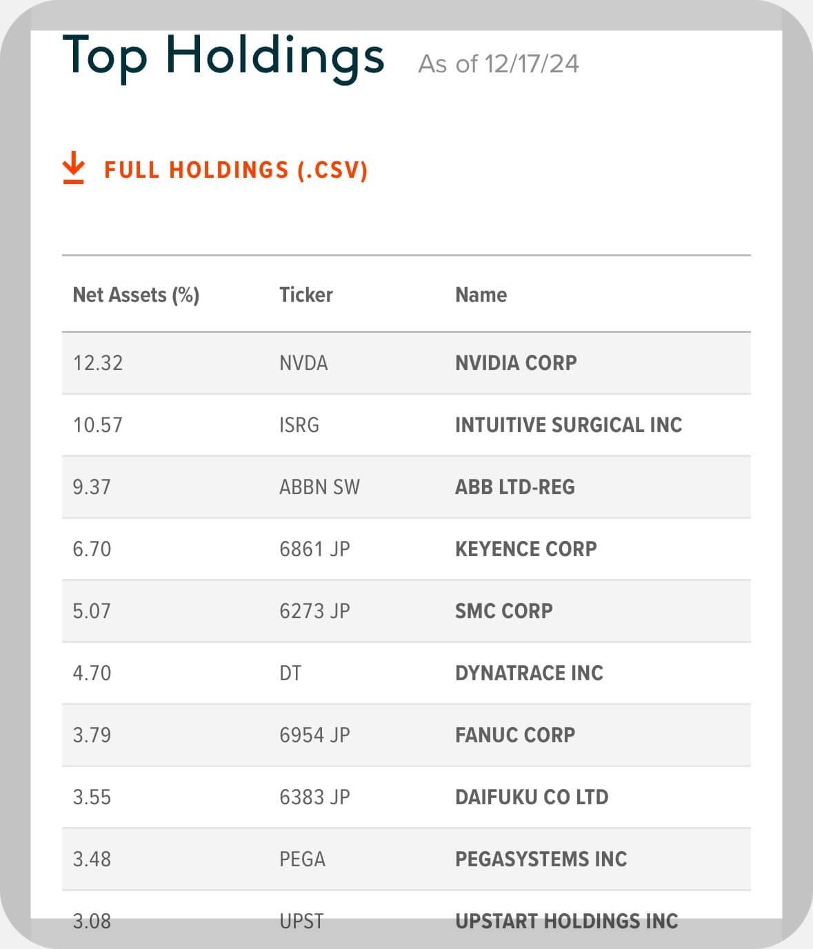 특징: ABB, Intuitive Surgical 등 로봇과 AI 관련 기업 포함.