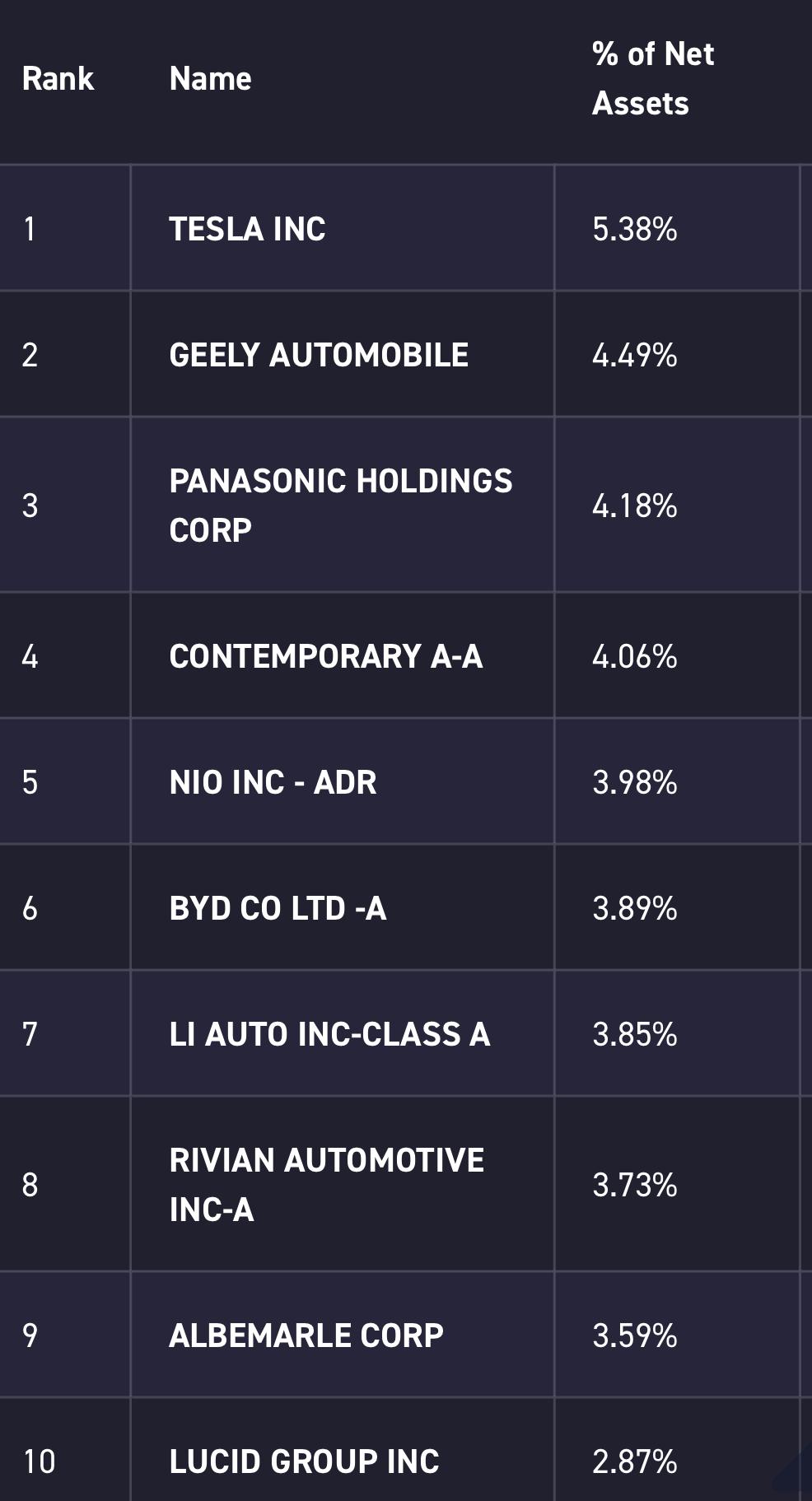 특징: 테슬라, 니오, BYD 등 전기차 관련 기업 투자.