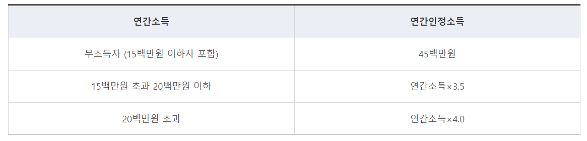 | 1,500만원 ~ 2,000만원 이하 | 연소득 x 3.5 |