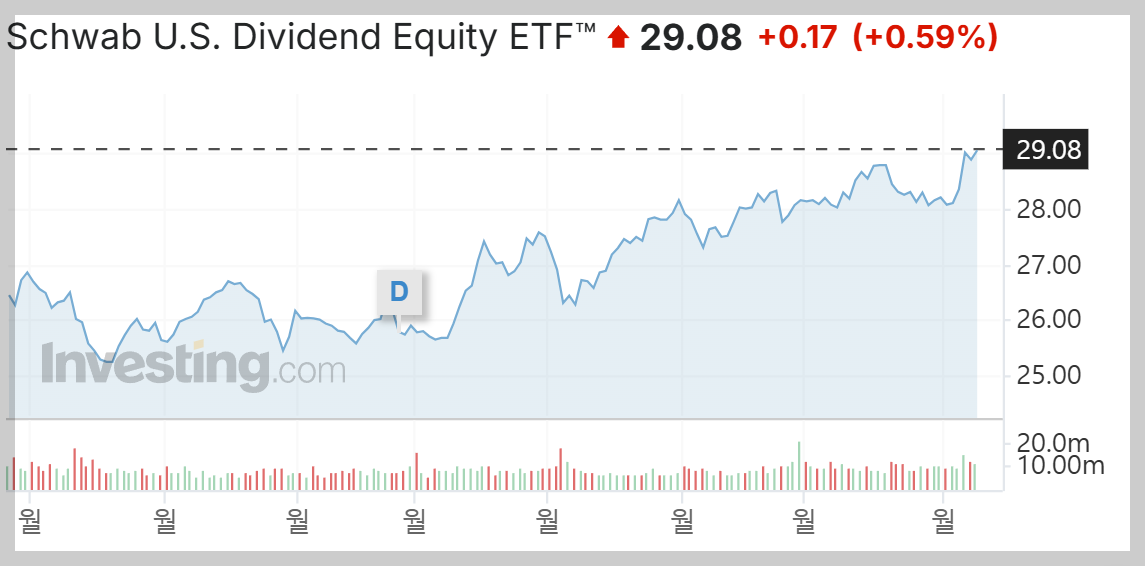 SCHD ETF는 Schwab U.S. Dividend Equity ETF라는 이름을 가진 미국 배당성장 ETF입니다. 이 ETF는 미국의 대표적인 자산 운용사인 찰스 슈왑(Charles Schwab)이 운용하며, 안정적인 배당 수익을 목표로 하는 투자자들 사이에서 인기가 높습니다. SCHD는 주로 고배당을 지급하면서도 안정적인 실적을 보여주는 미국 대형 기업들로 구성되어 있습니다.